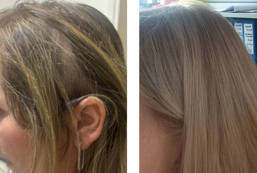 Manje ispadanja, manje lomljenja, bolja gustoća/volumen, sjajnija i glatkija tekstura, te pojava „baby hairs” nakon nekoliko tjedana.