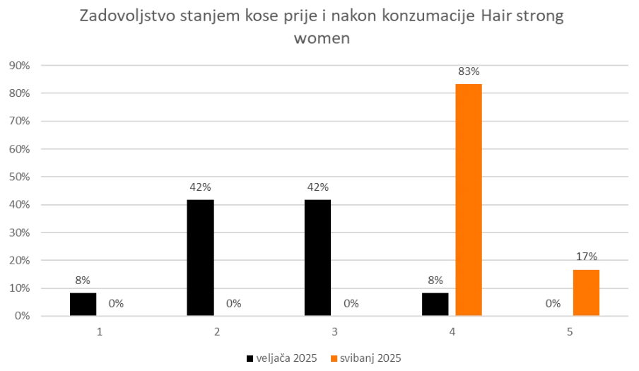 Ispitivanje u trajanju od 3 mjeseca. Početno stanje kose i vlasišta – prije konzumacije (veljača 2025), stanje kose i vlasišta nakon konzumacije kapsula (svibanj 2025)